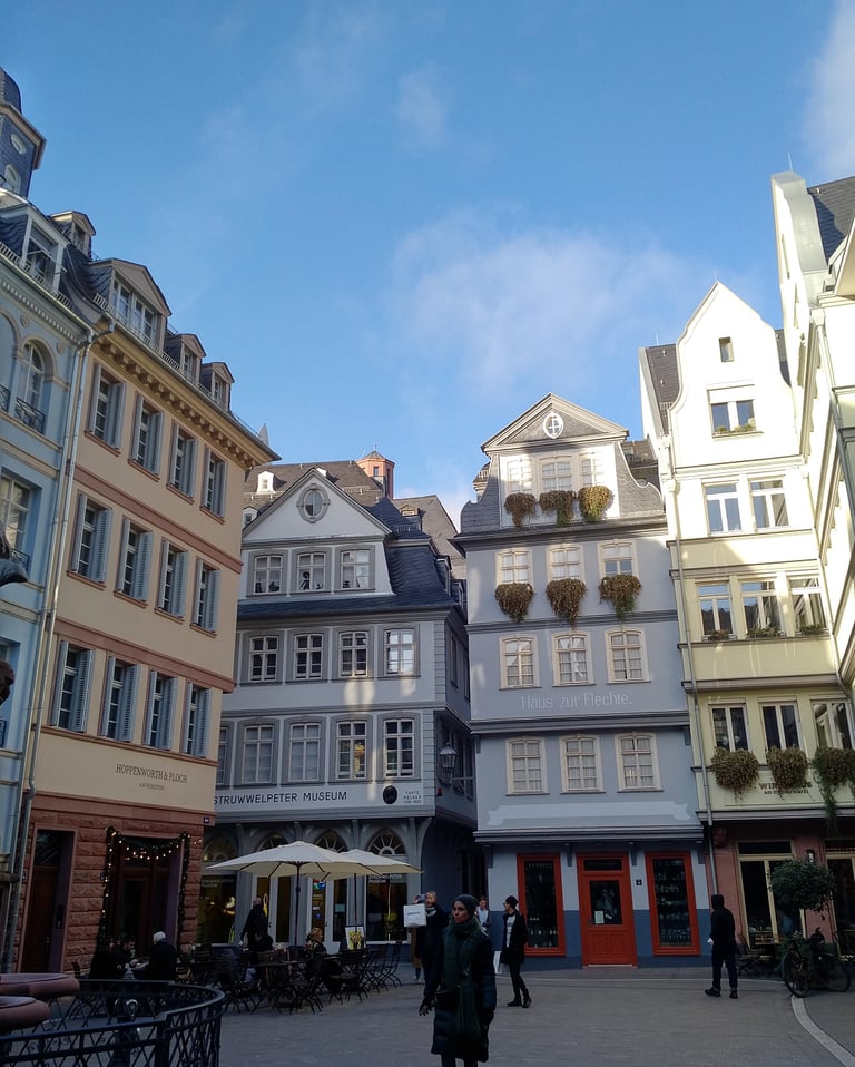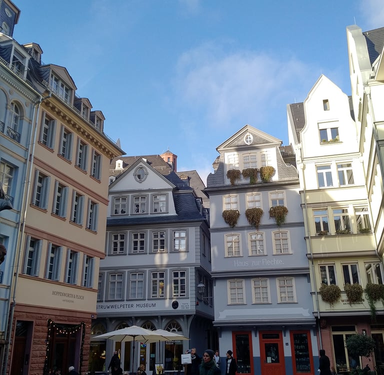 Als ich davon erfuhr, daß Frankfurts Altstadt neu aufgebaut werden sollte, hatte ich zuerst Sorge, es würde künstlich aussehen – welche Seele können brandneue Gebäude, selbst wenn sie auf alt getrimmt sind, schon haben? Würde die Altstadt die sterile Süßlichkeit Disneylands aufweisen? Ich war mit diesen Bedenken nicht allein und sicher wirkte das kleine Areal zwischen Dom und Römerberg, bestehend aus zwei Sträßchen und dem überschaubaren Platz Hühnermarkt direkt nach seiner Fertigstellung noch recht steril. Mittlerweile aber ist es ein belebtes Viertel mit allerlei Läden und Lokalen, sündhaft teuren Wohnungen und einer durchaus natürlichen Atmosphäre. Es wurde viel Wert auf Details und Naturtreue gelegt und diese im Rahmen der Möglichkeiten eingehalten. Fotos der alten und neuen Altstadt zeigen dies. Meine Familie Wallenfels und alle, die Frankfurt vor der Zerstörung kannten, würden dieses Viertel sofort wiedererkennen. Es ist natürlich aufgehübscht, die Gebäude sind brandneu, das sieht man ihnen an und sie haben nichts von dem vernachlässigten Verfall, welcher die Frankfurter Altstadt schon Jahrzehnte vor ihrer Zerstörung befallen hatte. Sie war nämlich keineswegs pittoresk, als Wohnviertel nicht begehrt, im Gegenteil. Umso mehr es die Frankfurter nach Schleifung ihrer Stadtmauern aus jenem engen Bereich mit seinen mittelalterlichen Häusern und dunklen, stinkenden Gassen hinauszog, desto mehr wurde die Altstadt zum Slum. Selbst der repräsentative Römer verfiel zunehmend.