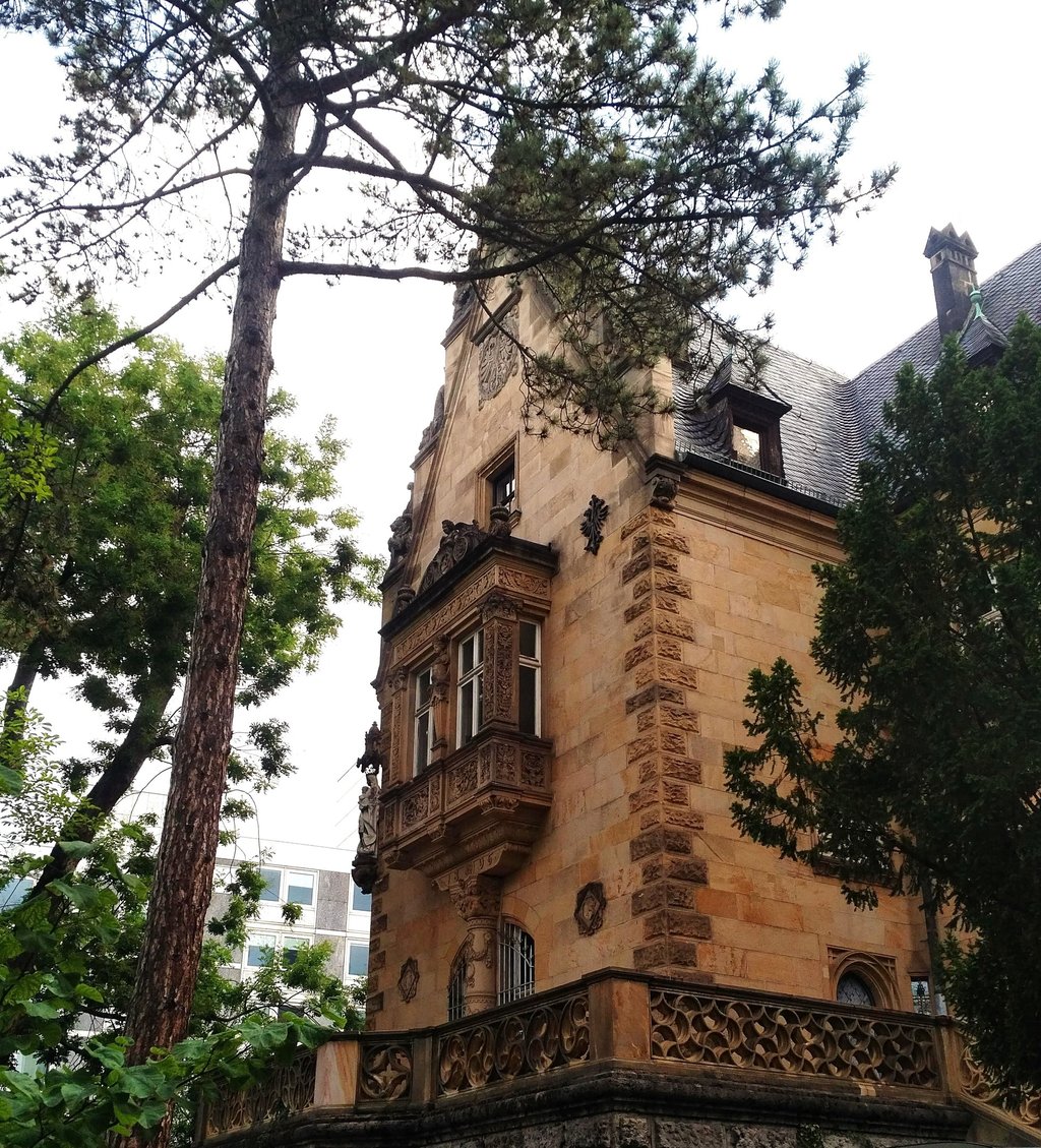 Der deutsch-französische Krieg hatte dem Land die lange erhoffte Einigkeit beschert (auch wenn nicht jeder glücklich darüber war, daß dies unter preußischer Vorherrschaft geschehen war), außerdem flossen reichliche Reparationszahlungen in das neugegründete Deutsche Reich, die Gründerzeit brachte jene architektonische Pracht hervor, die man in dieser Gegend ebenso wie am Opernplatz und im Westend bewundern kann. Das so lange mittelalterlich geprägte Frankfurt, das nach der französischen Besatzung Anfang des 19. Jahrhunderts seine ersten Schritte in die Moderne gemacht hatte, war zum Ende jenes Jahrhunderts vollständig dort angekommen. Vieles wurde seitdem zerstört, weniges erhalten, einiges wieder aufgebaut. Wer nun eine Pause braucht, kann sich im Hof oder Inneren des Liebieghauses im Café dem Genuss hingeben, sich mitten in der pulsierenden Stadt Frankfurt ein wenig in eine ruhigere Zeit zurückversetzt zu fühlen.