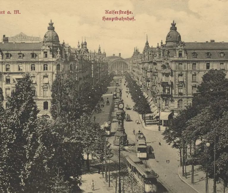 Mit dem Bau des Bahnhofs, der damals einsam in der Landschaft stand, wurde diese Gegend für die Stadt erschlossen und innerhalb weniger Jahre zu einem belebten Stadtviertel. War die von der Innenstadt zum Bahnhof führende Kaiserstraße in den 1880ern nur in ihrem stadtnahen Teil bebaut, entwickelte sie sich bald zu einer eleganten und gefragten Adresse – in „Der Zukunft Schatten“ zieht auch das Bankhaus Wallenfels an diesen renommierten Ort.