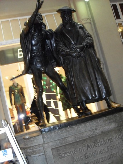 There is a statue of Faust and Mephistopheles in front of Auerbach’s cellar. Here too it is worth paying attention to a foot, this time Faust’s left foot. You can see that the top is much brighter than the rest of the statue. Touching the foot is said to bring good luck. I was even told that it ensures that you will return to Leipzig and so of course I never miss doing that.
