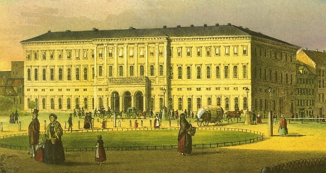 They would feel similar about Augustus Square. I already described how the former Augusteum-Paulinerkirche-Felsche ensemble has changed. The other three sides of the square also offer a completely different picture than before the war. I admit that today’s Augustus Square is not at all one of my favorite places in Leipzig. I would have loved to see the old square! Once part of the fortifications and then a park, the area was designed as a city center square as of the 1830s, not only with the aforementioned Augusteum and the coffee house, but also with an impressive main post office.
